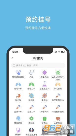 为患者提供预约挂号、当日挂号、预约建卡、就诊卡绑定、检查结果查询等功能,并能了解医院信息、科室信息、专家信息、健康乐园等多方面医院情况。