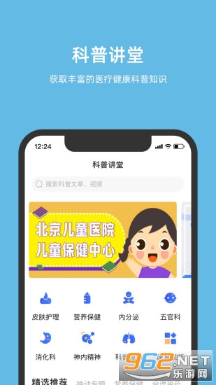《北京儿童医院App》是由北京儿童医院官方推出的手机挂号软件,广大患者及家属可以直接通过北京儿童医院App进行预约挂号、预约建卡、就诊卡绑定、结果查询等多项功能,可以通过北京儿童医院App对医院科室、医生以及医疗配套设施等多项信息进行全方位了解。