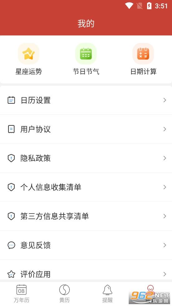 提供公历、农历、天气、日程、黄历、生日、节日等日历实用功能。