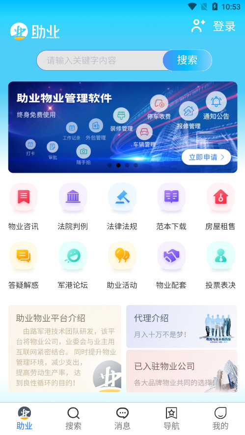 《助业网app》所有内容基于全国所有物业公司信息汇总而来,涵盖物业新闻、物业问答、合同范本、物业法律等。作为助业物业管理平台的信息汇总,为物业行业提供了丰富的资源。线下活动丰富多彩,物业主动举行线下活动,每个人都能参与其中,实现物业公司内部的精细化、便捷化高效管理,实现无纸化、自动化、便捷化办公,提高效率,降低成本。