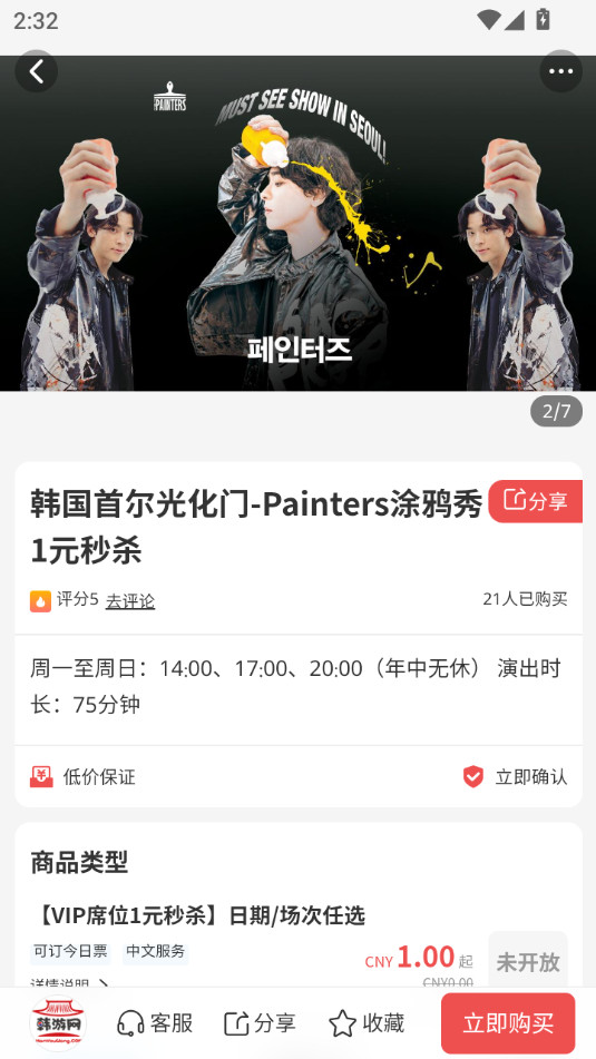 2,景点以及公演门票预订:提供韩国最全面的景点以及公演预订,价格低廉,基本上所有产品都是线上最低价,手机预订更方便,大部分产品可当天预订,随走随订;