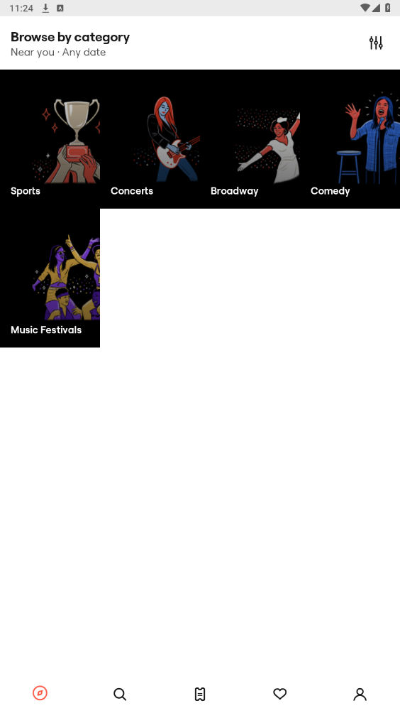 轻松浏览任何现场活动的门票。 通过团队,艺术家,场地,流派或运动(棒球,篮球,曲棍球,足球,NASCAR等)进行搜索,以查看您附近的即将举行的活动。