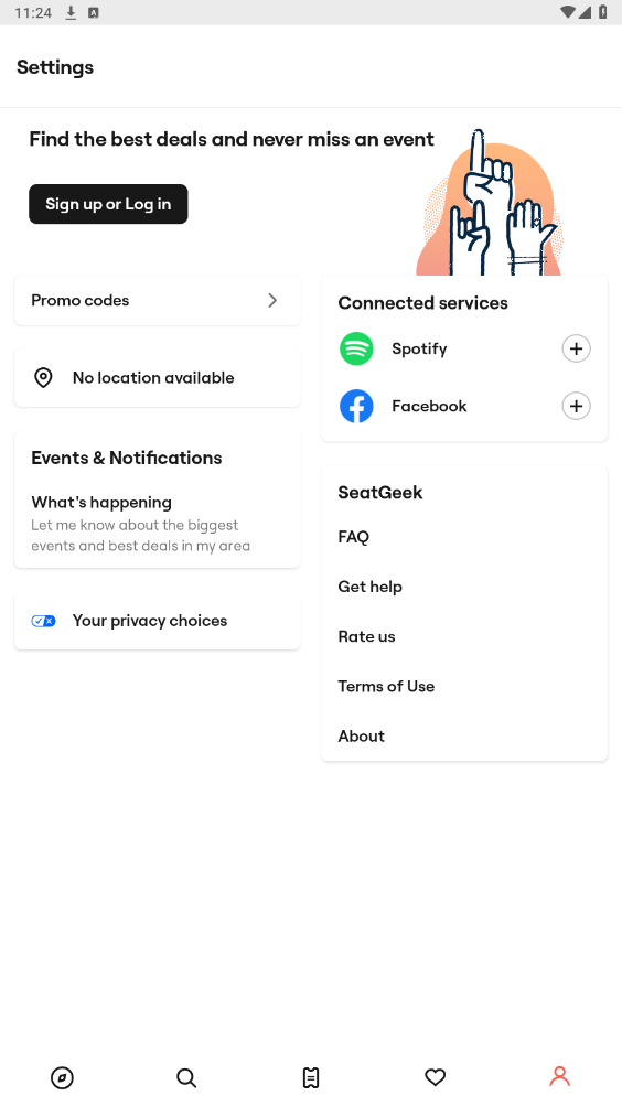 打开SeatGeekapp,点击右下方头像