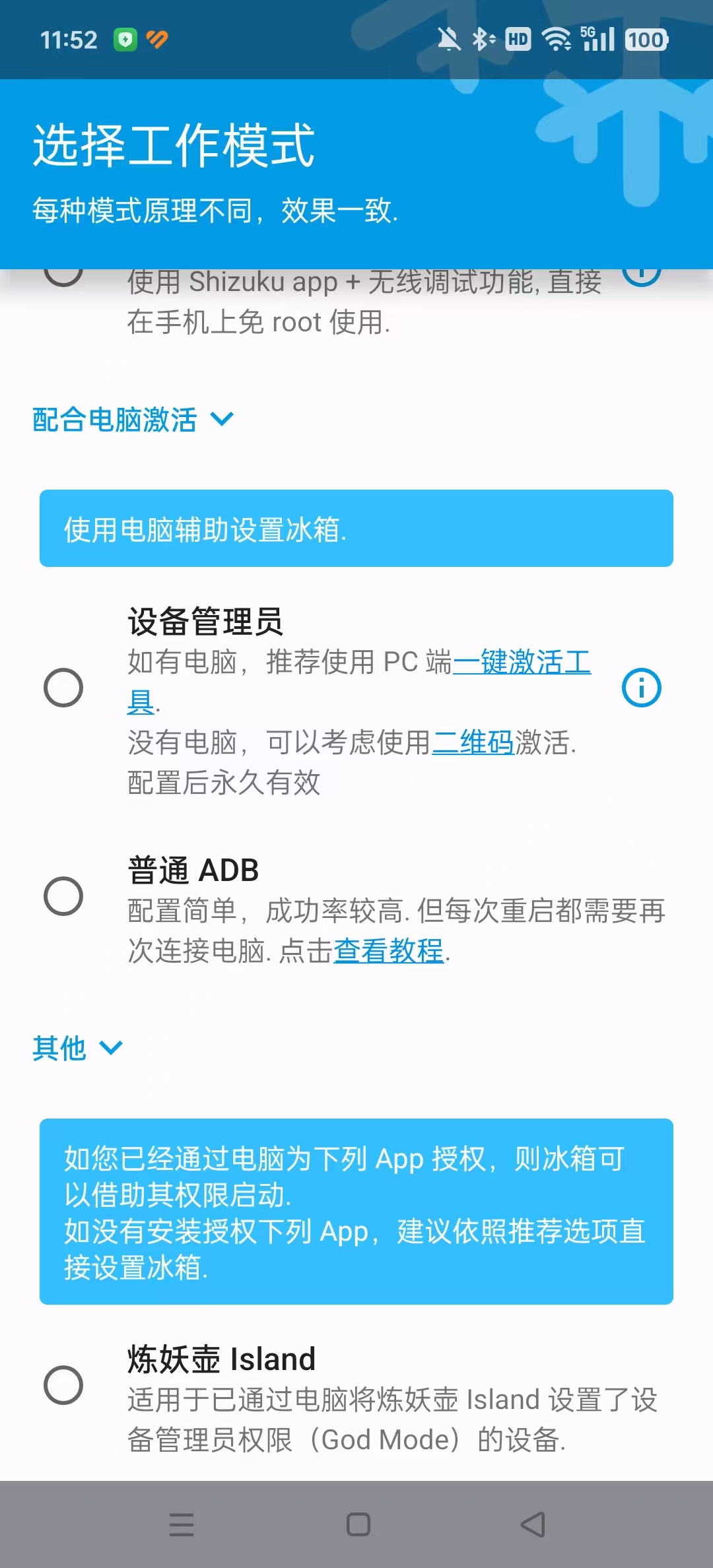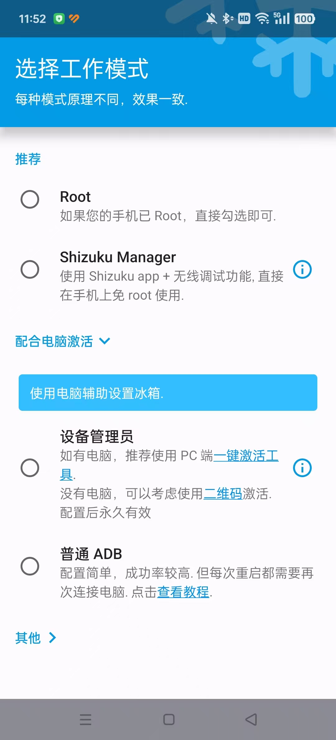 如不能接受上述问题,请考虑使用普通ADB模式使用冰箱。也可免Root,但每次重启手机都需要使用电脑重复配置。