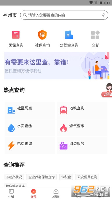 由福州市人民政府为方便广大市民需求所推出的一款便民服务平台软件,你能够在上面查询公积金、社保缴纳房租、水电费,了解最新城市政策变动等等,非常的方便!