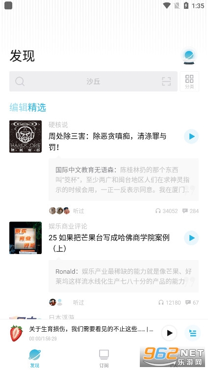 1、选择你所感兴趣的播客内容点击播放