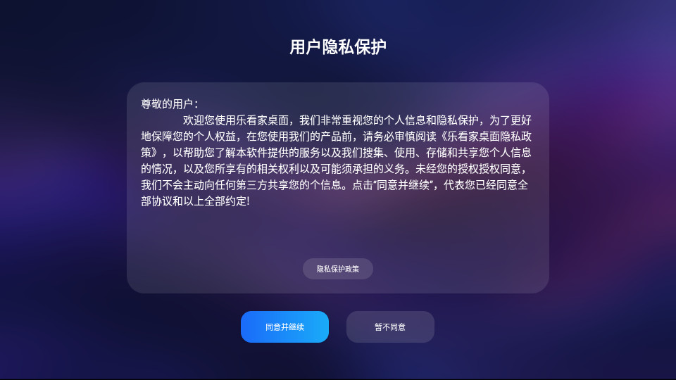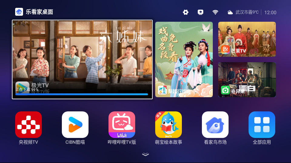 《乐看家桌面》是一款专为电视设计的桌面应用程序,旨在为用户提供更加便捷、个性化的电视使用体验。内置了丰富的家庭常用电视软件,页面设计简洁、纯净无广告,降低了老人和小孩的使用门槛,使他们能够自主操作电视,轻松找到想看的节目或应用。桌面开机实现快速响应,用户无需等待即可进入主界面。内置海量应用软件,包括热门影视资源、播放器、搜索引擎等,一键安装安全快速。
