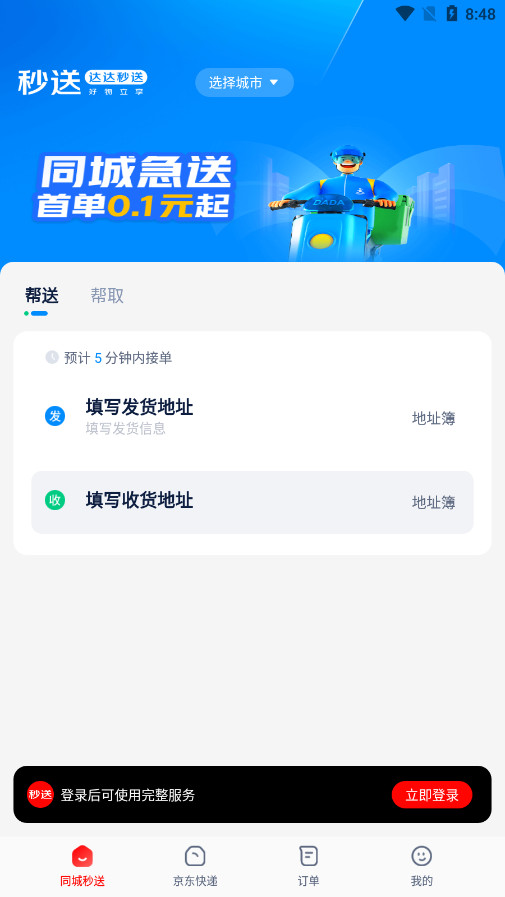 达达秒送是同城内的即时配送服务。