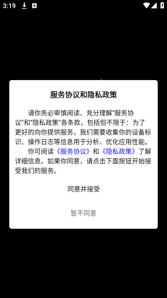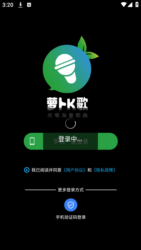 下载安装并打开萝卜k歌app,点击同意并接受