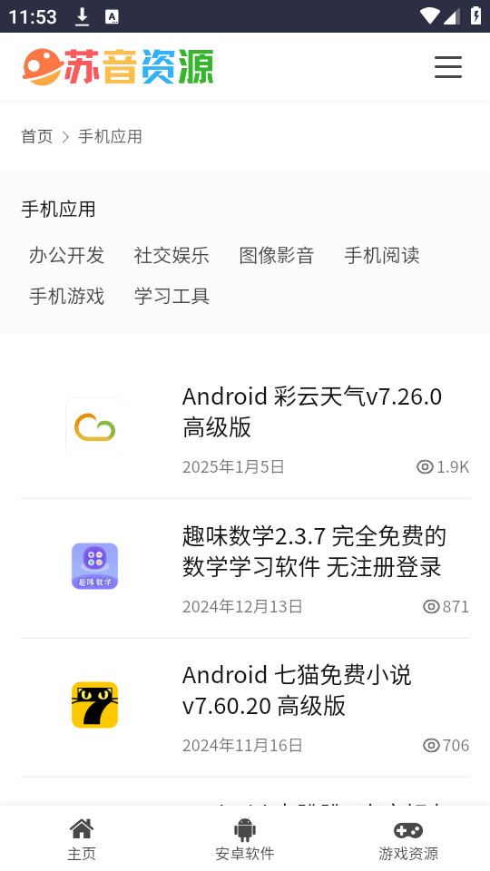 苏音资源,汇集了海量的软件资源,无论是影视类、小说类还是漫画类等都有,所有的软件资源都是免费下载的,另外还有很多的在线工具可以使用,详细的软件资源分类帮助用户可以更好的进行需要的资源。