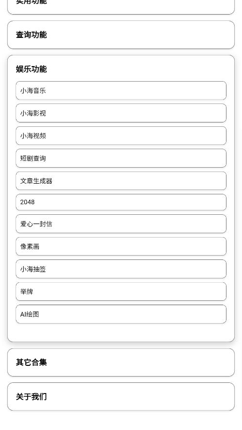 《小海工具箱X》,一站式解决你的难题!它是一款功能强大的综合性应用,集生活、学习、娱乐服务于一身。不仅有时钟、计算器等日常必备工具,还有二维码生成器、文本生成器等实用功能,满足你的多元需求。闲暇时,小海音乐、影视、AI 绘图帮你放松身心。更有影视、软件、接码、网站等丰富资源,一键分享,让你的生活与工作更加高效便捷!