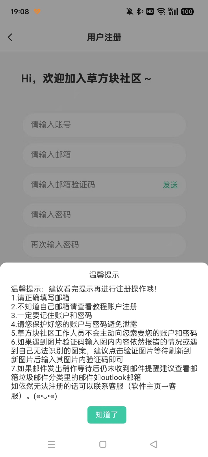 使用手机号注册并登录草方块社区。