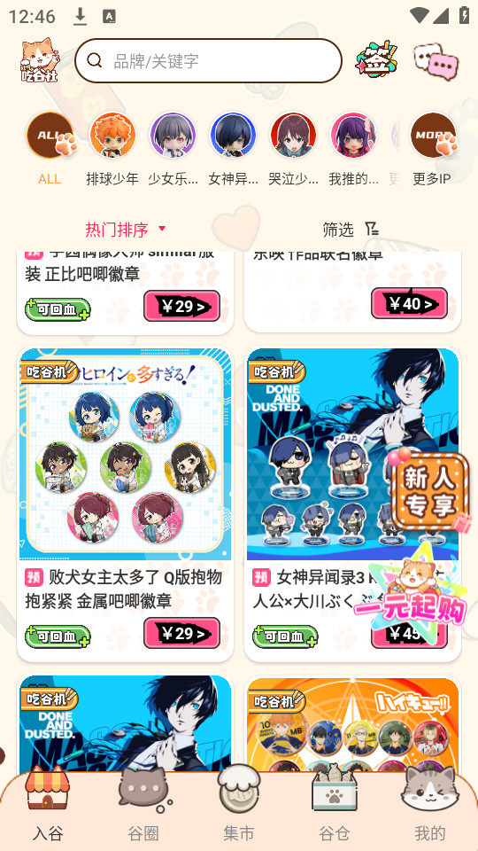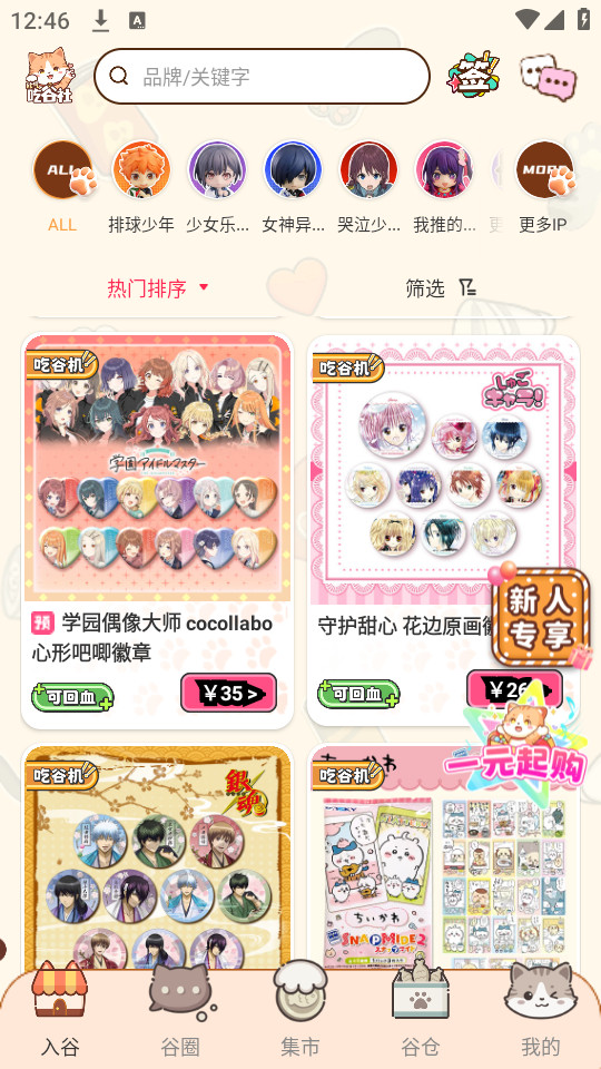 欧气吃谷社是一款提供在线购买谷子的平台,一站式购齐,国内飞速吃现。