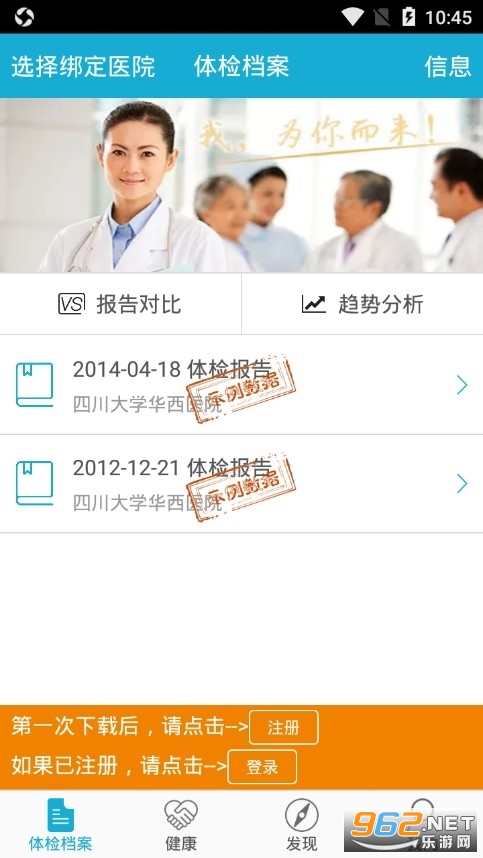《华西健康体检中心app》华西健康促进服务平台是华西医院官方推出的专属健康管理APP,主要服务包括体检预约、重病危机预警推送、体检档案查询、对比分析、专家咨询等多项健康管理评估,能够有效的帮助各位用户更好的规划自身健康。
