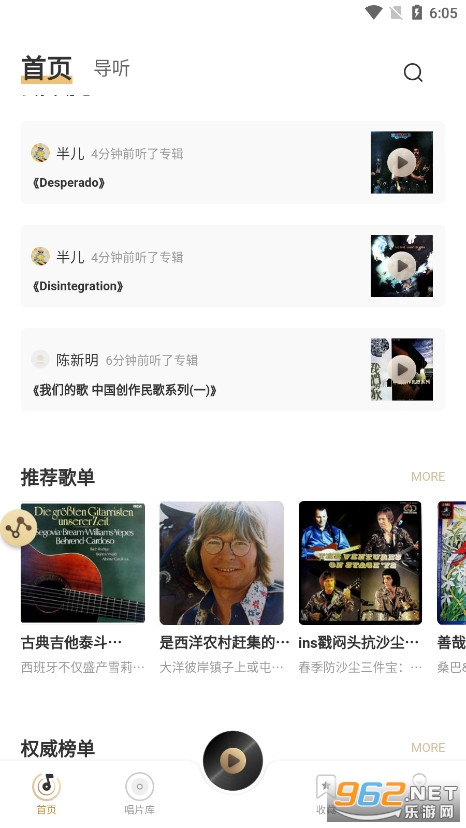 3、可以看到软件共分为首页、唱片库、收藏以及我的几个选项,“导听”功能版块也有些专业的视频讲解。