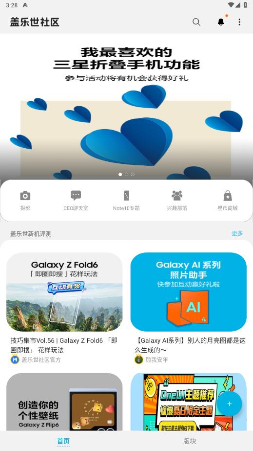产品专区:根据不同产品线(如Galaxy S系列、Note系列、Fold系列等)设立专区,便于用户查找相关资讯、评测、教程及用户反馈。