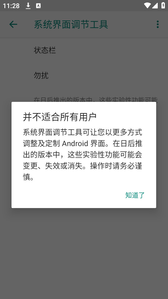 下载安装并打开隐藏顶部状态图标app,点击知道了