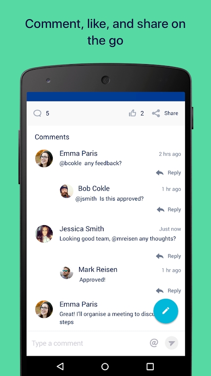 通过@提及、回复、页面共享和任务的推送通知随时了解情况