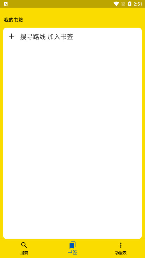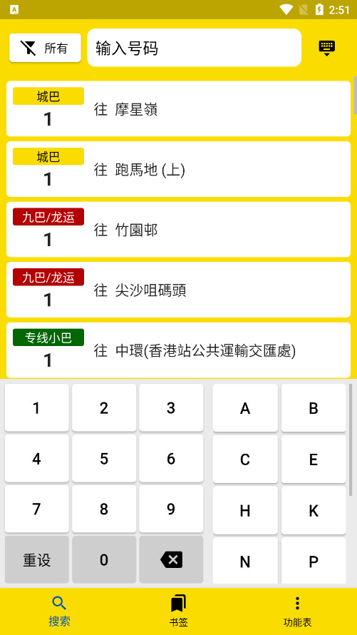 1、城巴易Citybus Lite功能栏,默认有【搜索】,【书签】和【功能表】3个部分。