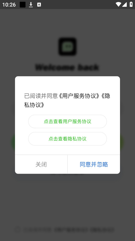 下载安装并打开窝chat app,点击同意并忽略