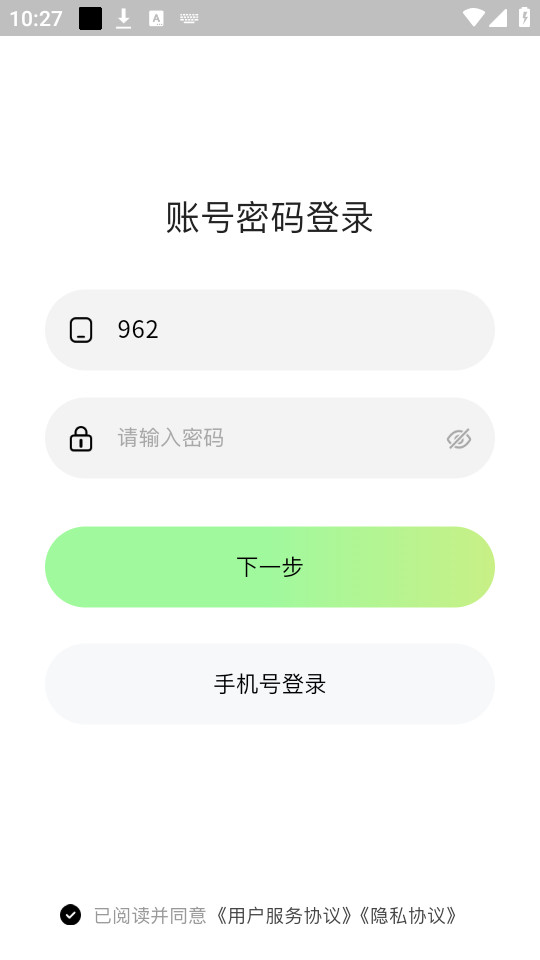 没有账号就输入手机号点击下一步进行注册登录