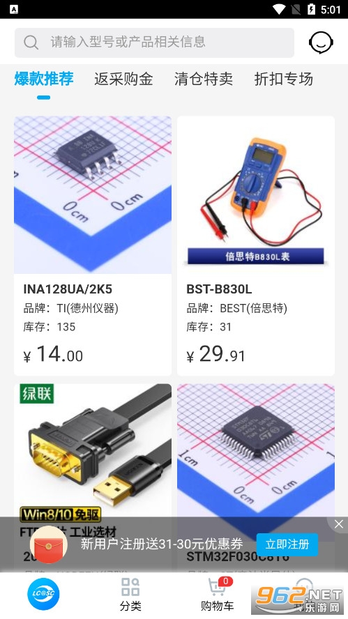 《立创商城》是深圳市立创电子商务有限公司推出的一款电子元件购买平台,在这个软件当中用户们可以进行电子器件的销售与购买,品种样式也是非常多,覆盖了生活当中非常多必需品所需的材料。并且这里还为各位采购或者首次接触电子器件的卖家和买家们提供了比较直接沟通方式,途中如果遇到什么问题也是可以直接进行在线交流搞清楚的。