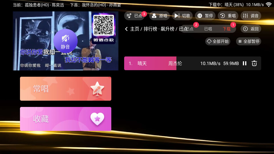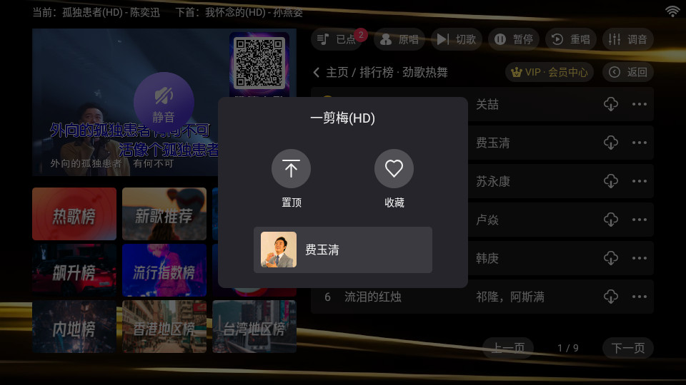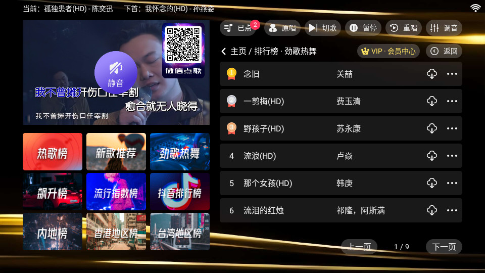 加载成功之后就能够进行点歌了,根据你的选择点击排行榜或者通过歌名进行点歌,点击左边页面能够进入大屏