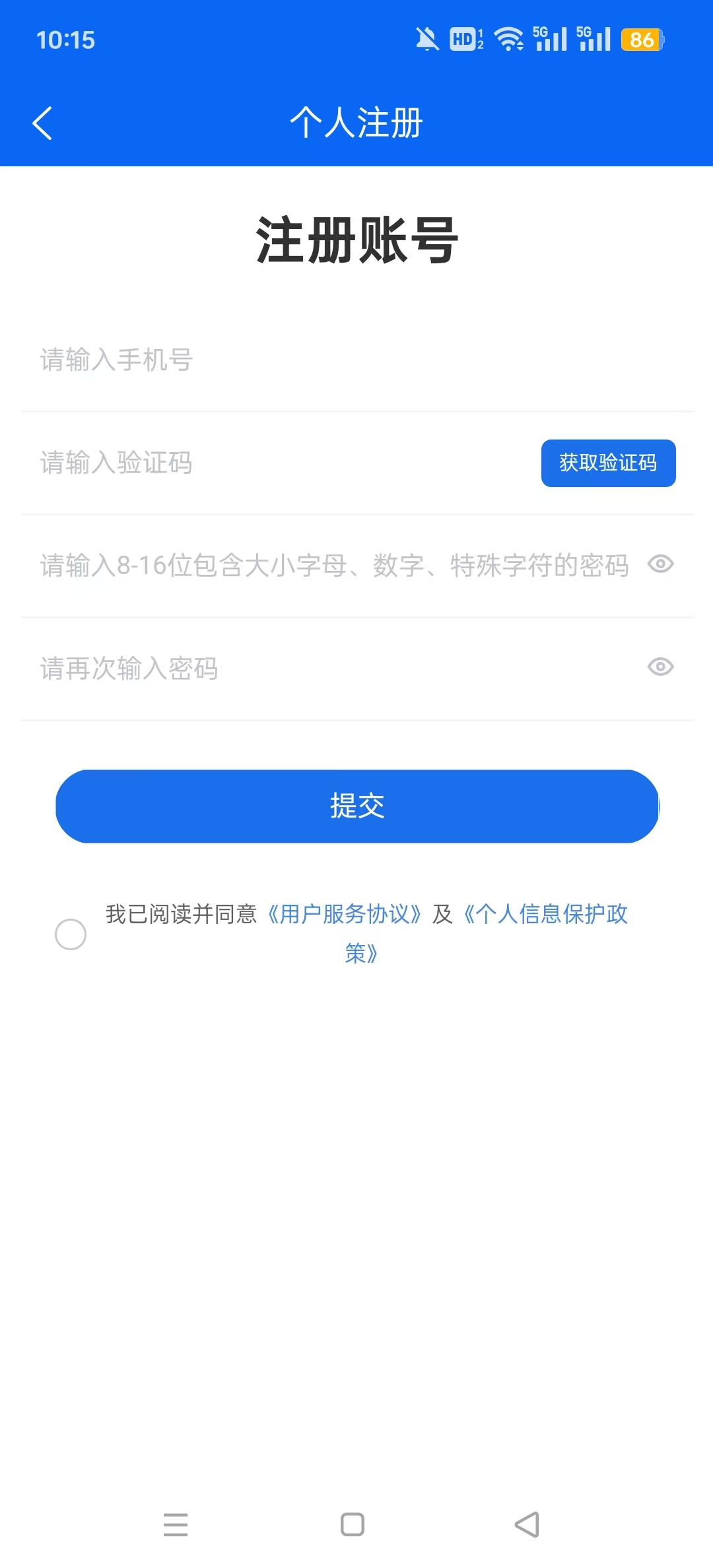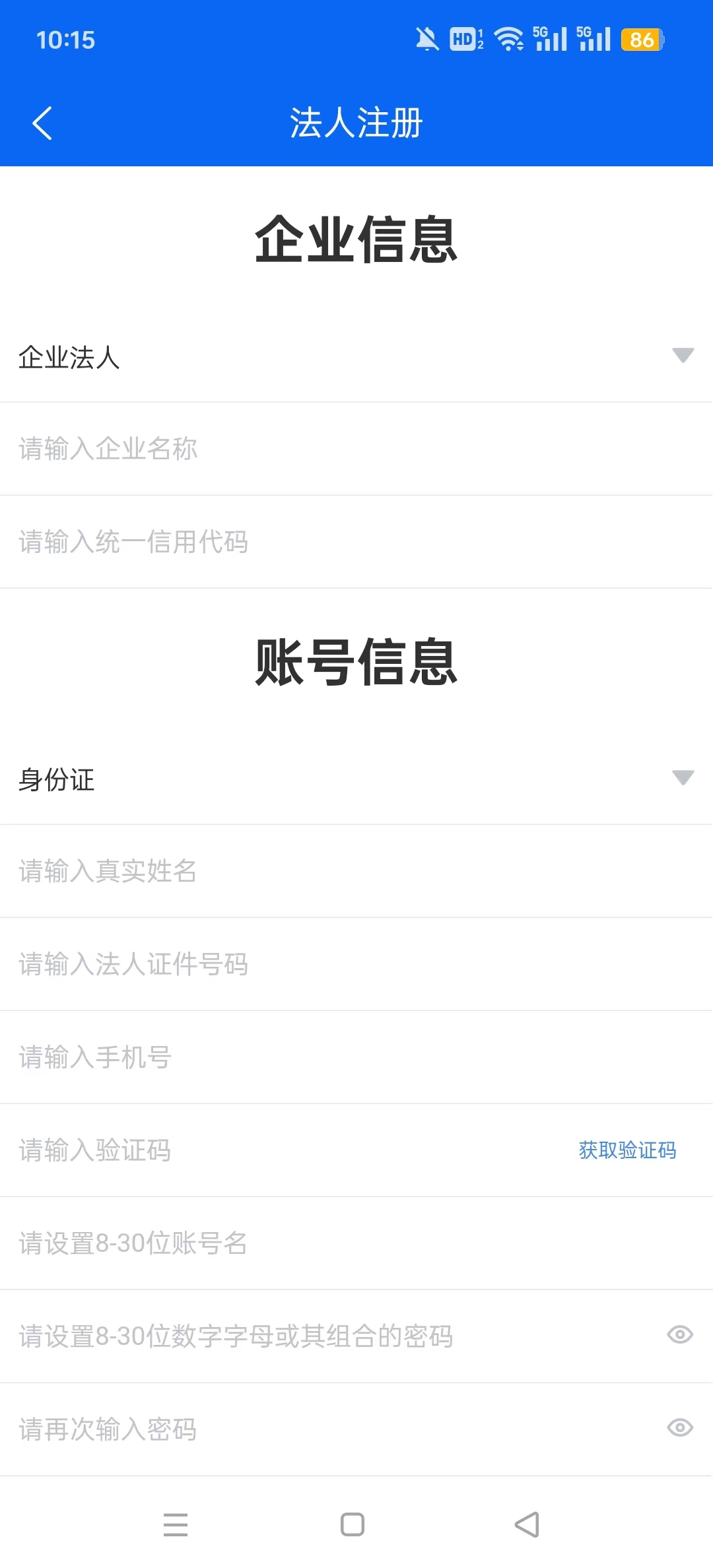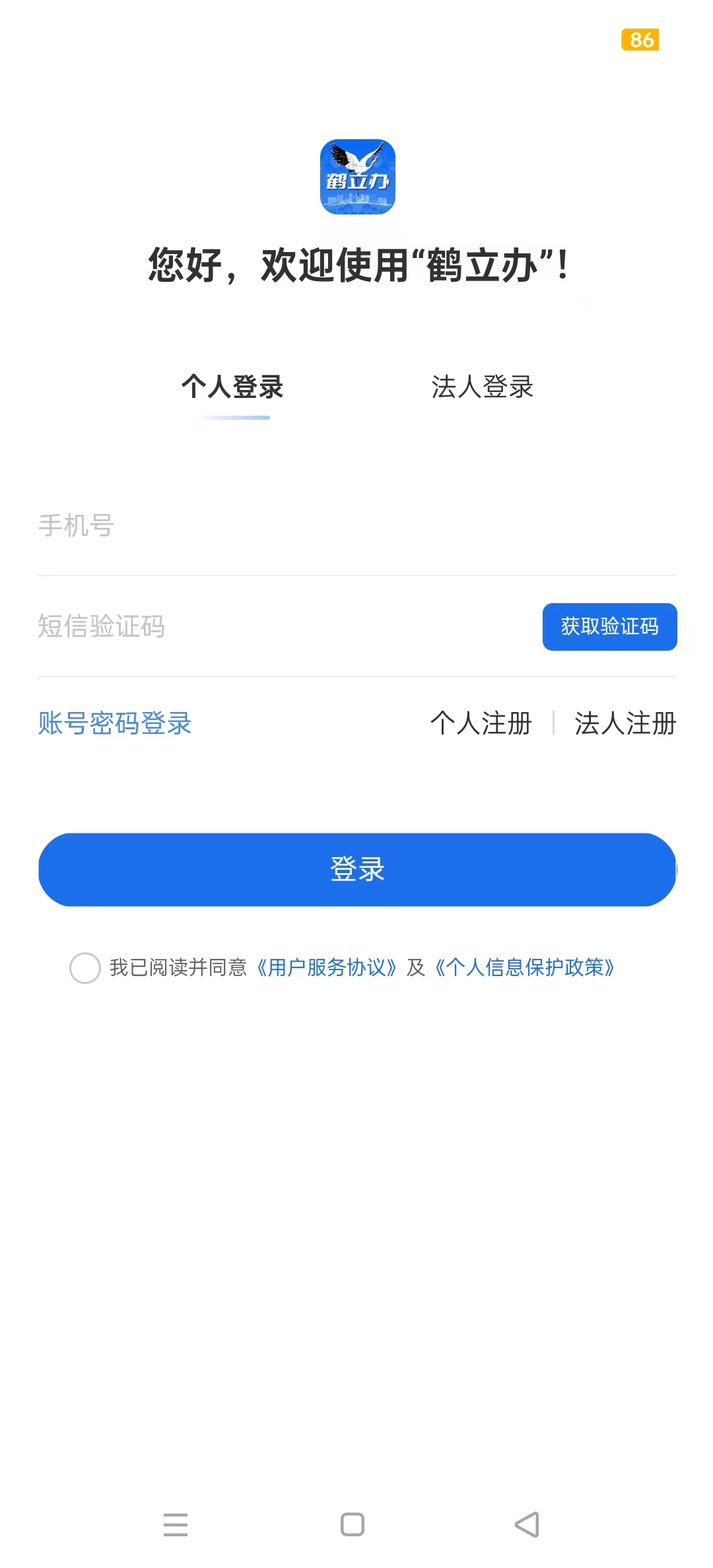 1、打开鹤壁市政务服务移动端App鹤立办,首先你要做的就是注册,这里有个人/法人两个注册选项,分别有不同的注册条件。