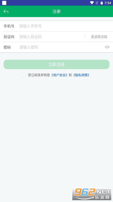 注册第一步,先填写手机号,点击“发送验证码”,收到验证码短信后,填写验证码,再填写自己设定的密码,最后点击“立即注册”按钮。