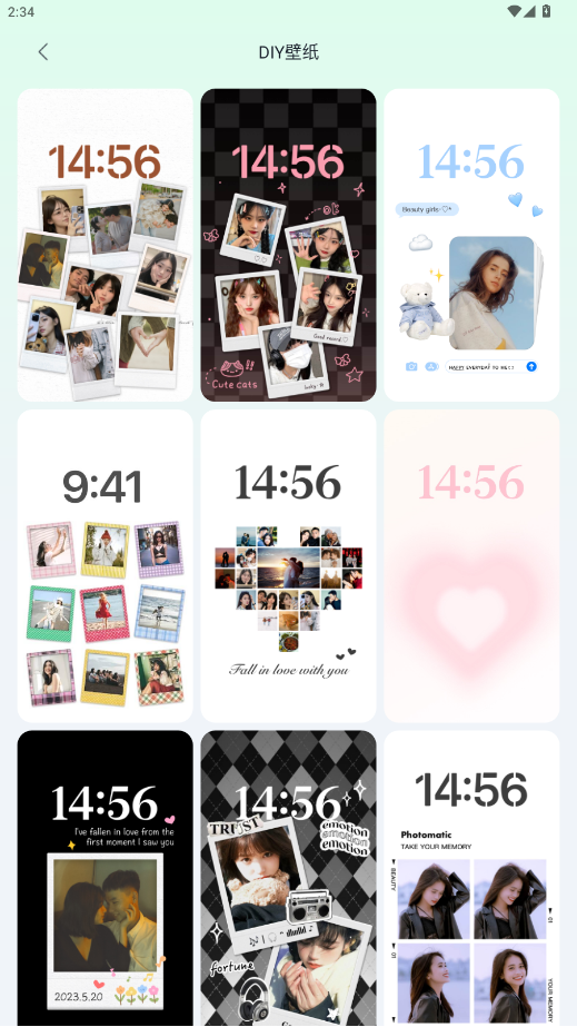 支持创建静态/动态壁纸,具有多种模板,如拍立得、心形拼贴、翻转卡等。还有各种电池图标贴纸,可以个性化您手机的顶部状态栏,让你的壁纸更加有趣。