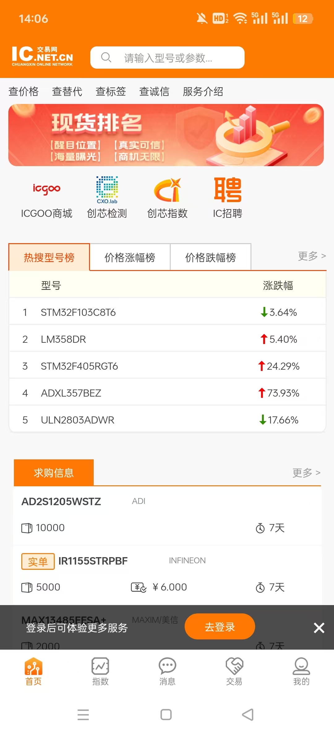 IC交易网手机客户端,没有时间和地点约束,可以随时随地更新热卖和库存时间实时查询创芯指数分析报告了解市场最新态势