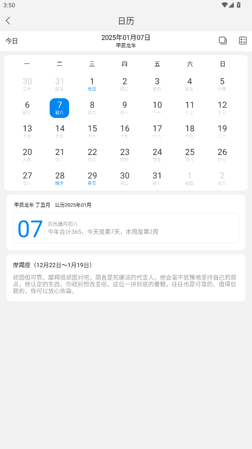 进入首页后,点击选择所需功能,比如万年历