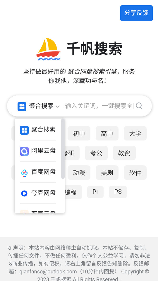 凭借其海量资源、智能推荐、便捷操作、完全免费且无广告干扰、实时更新与安全保障、云端同步与跨设备使用以及社区互动与反馈机制,成为了一款不可多得的云盘搜索工具。如果您对搜索有兴趣,不妨下载千帆搜索引擎APP,开启高效的资源检索之旅吧!