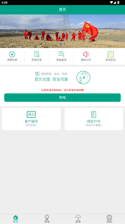 绑定后,返回首页,点击购电
