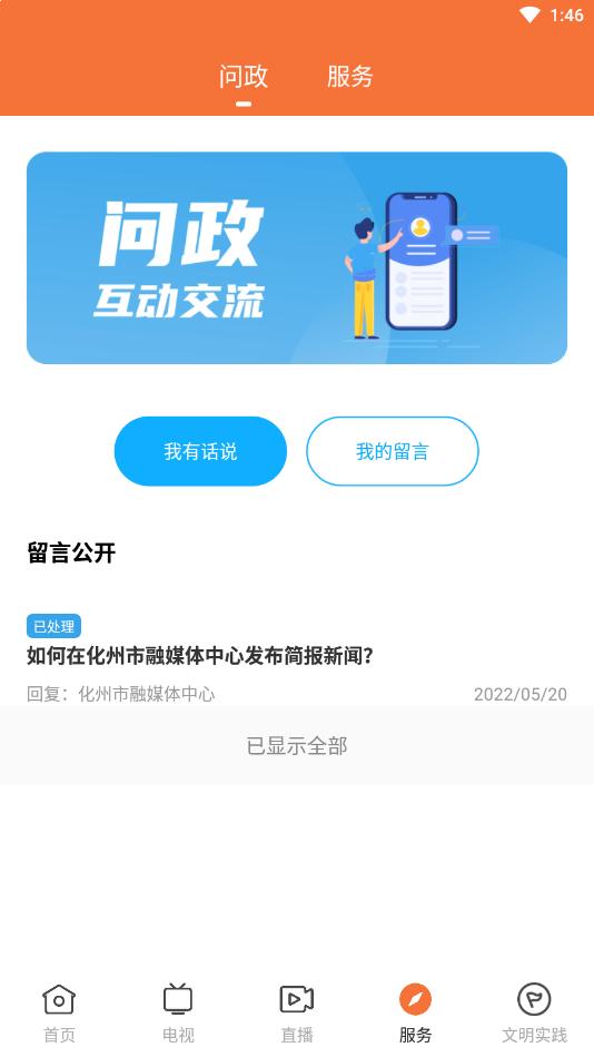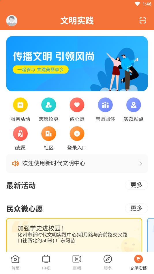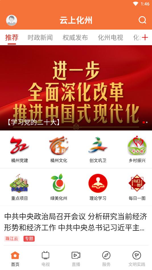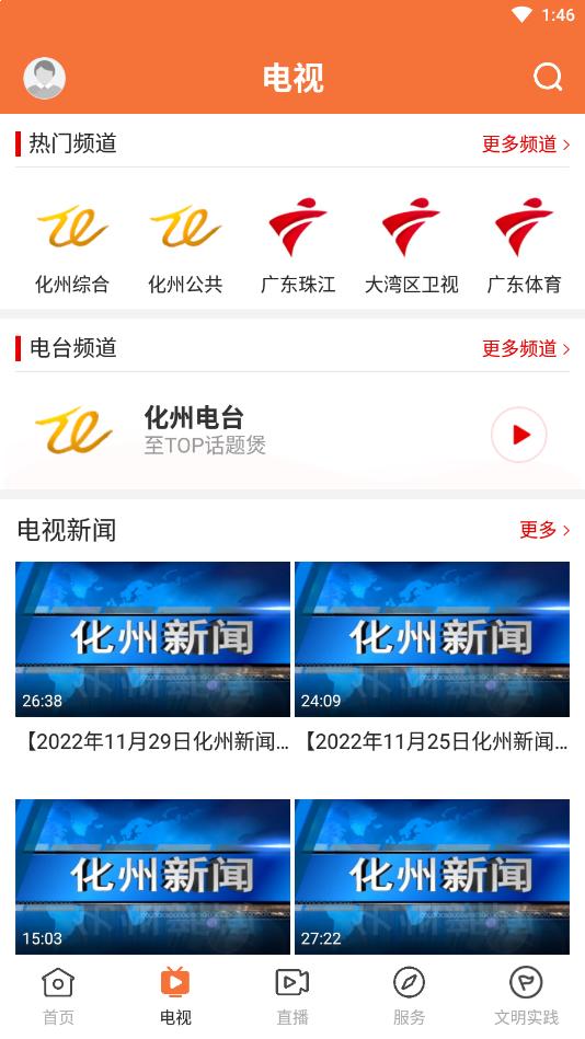 打开云上化州app,点击电视