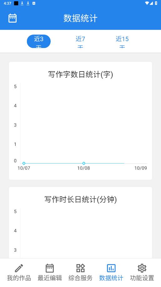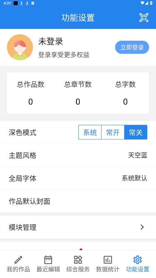 打开锦鲤写作app,进入我的作品界面,点击右下角+