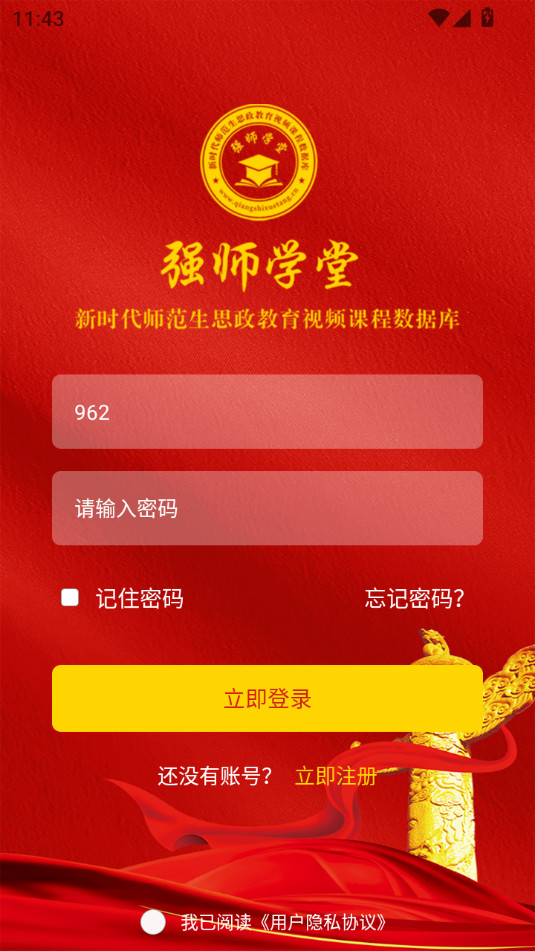 下载安装并打开强师学堂app,点击同意
