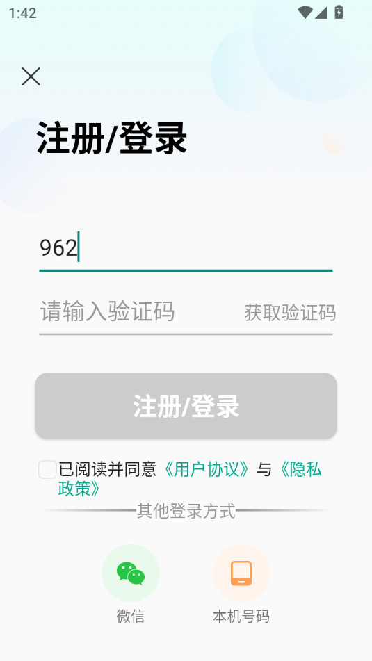 输入手机号验证码,勾选用户协议,点击注册/登录即可