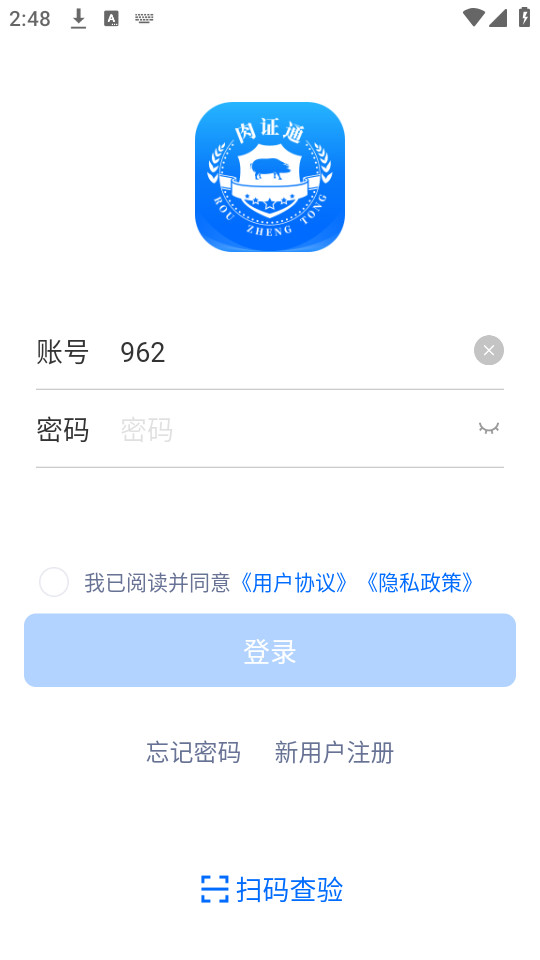 下载安装并打开肉证通app,点击同意并继续