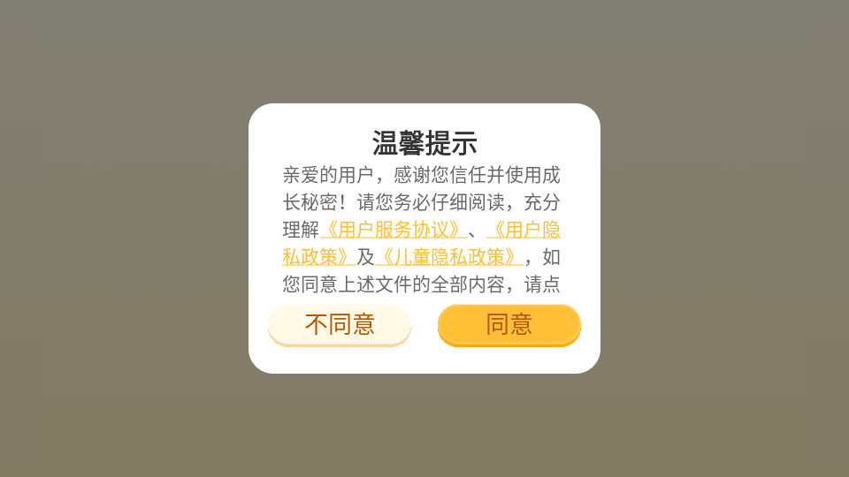 下载安装并打开成长秘密app,点击同意