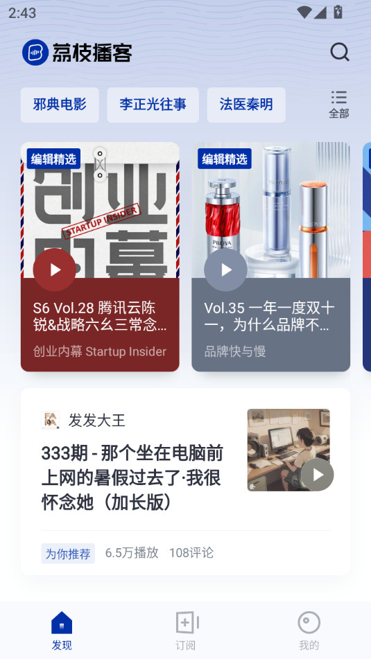 编辑精选、类型标签、听友评论为你筛选的优质播客,让你快速找到感兴趣的播客