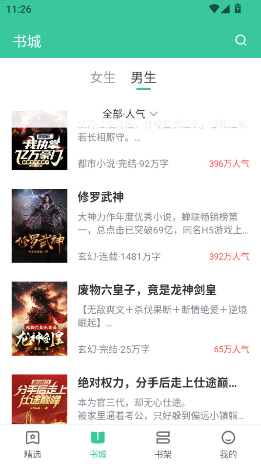 书架的小说可以免费阅读,书城中也能够找到自己喜欢的小说