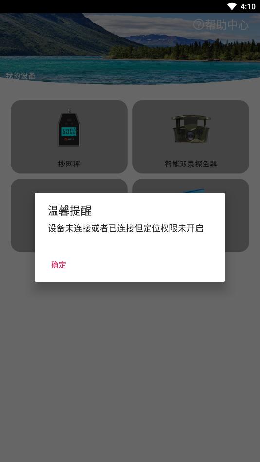 打开渔民公社app,开启定位权限,打开设备信号灯,进入软件后,选择设备