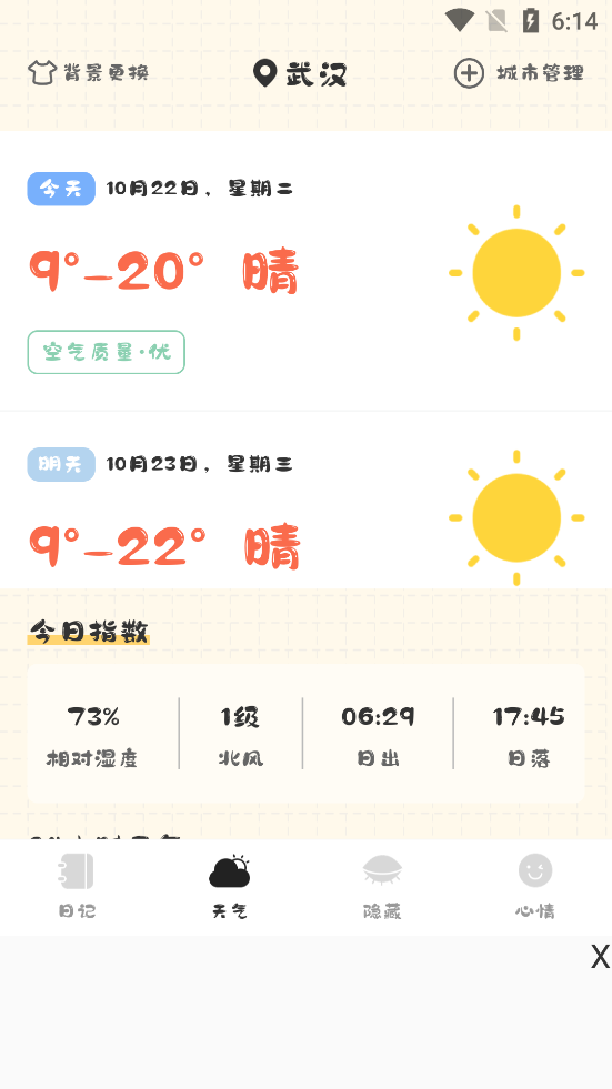 陪伴你每一天的个人日记。它是一本带锁的日记,是心情记录仪,你可以记录自己的经历,探索内心的情绪。可以把它当成你安全又私密的日记本,也可以作为一款免费的笔记应用。