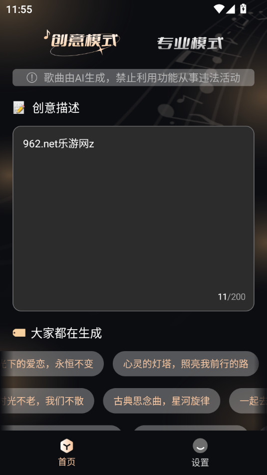 1、旋律一键生成:选定歌曲风格与情绪基调,AI快速创作旋律,激发创作灵感。