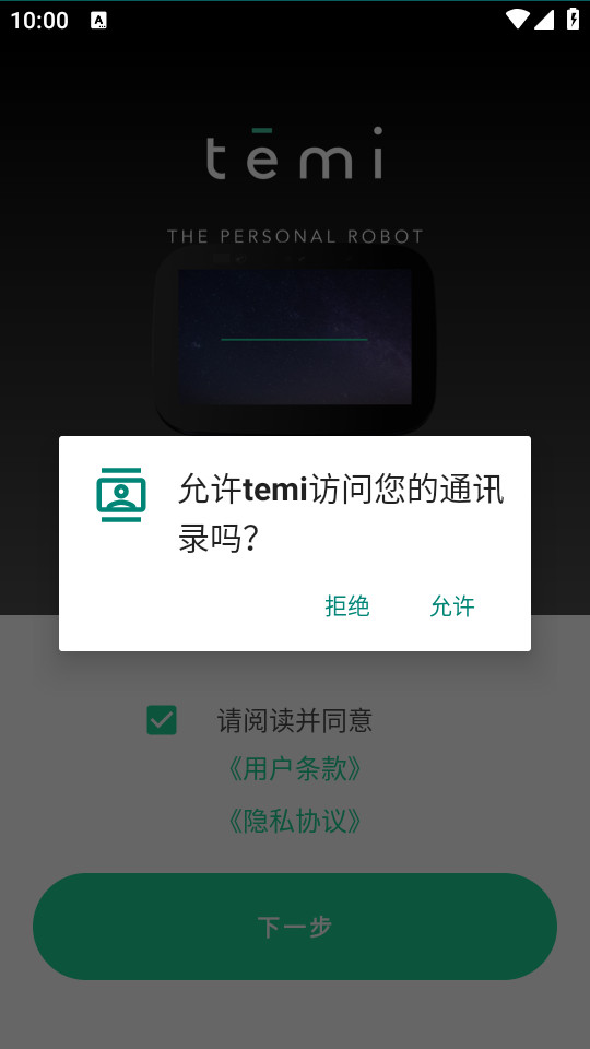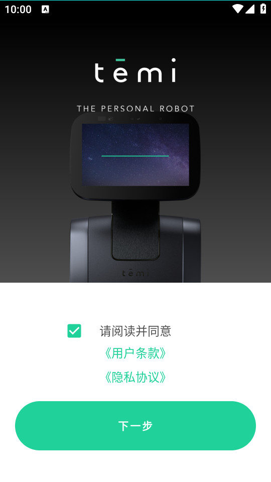下载安装并打开temi app,勾选协议,点击下一步