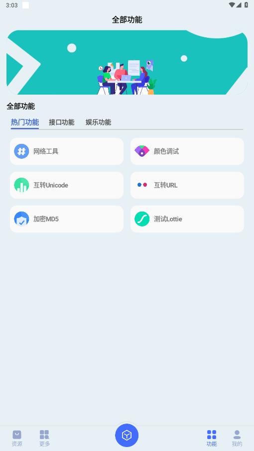功能界面可以直接在线使用网络工具,颜色调试工具,矢量图库,抖音解析等接口功能,以及音乐下载,在线影视,精美壁纸等等娱乐功能
