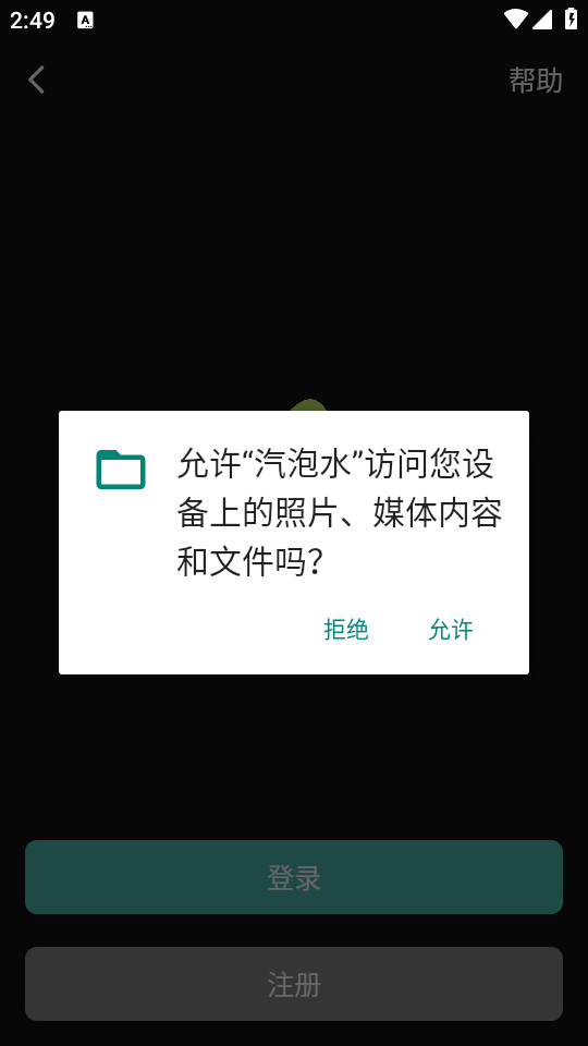 下载安装并打开汽泡水音乐app,点击允许