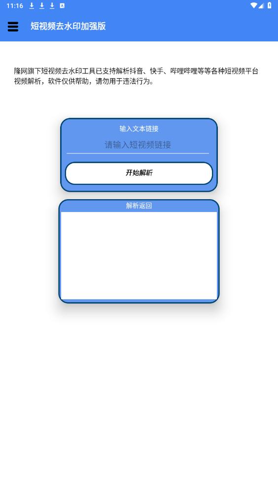 隆网短视频去水印app是一款非常实用的短视频去水印工具,它不仅支持多个短视频平台,还具备高效解析和一键去水印的功能,让用户能够轻松获取高清无水印的视频内容。软件界面简洁明了,操作简便,非常适合初次使用的用户。