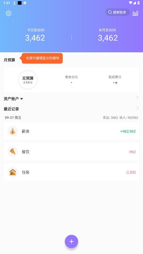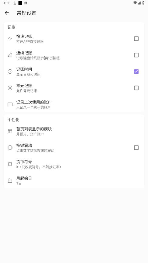 自定义:自定义收支分类,记账时间,随时修改
